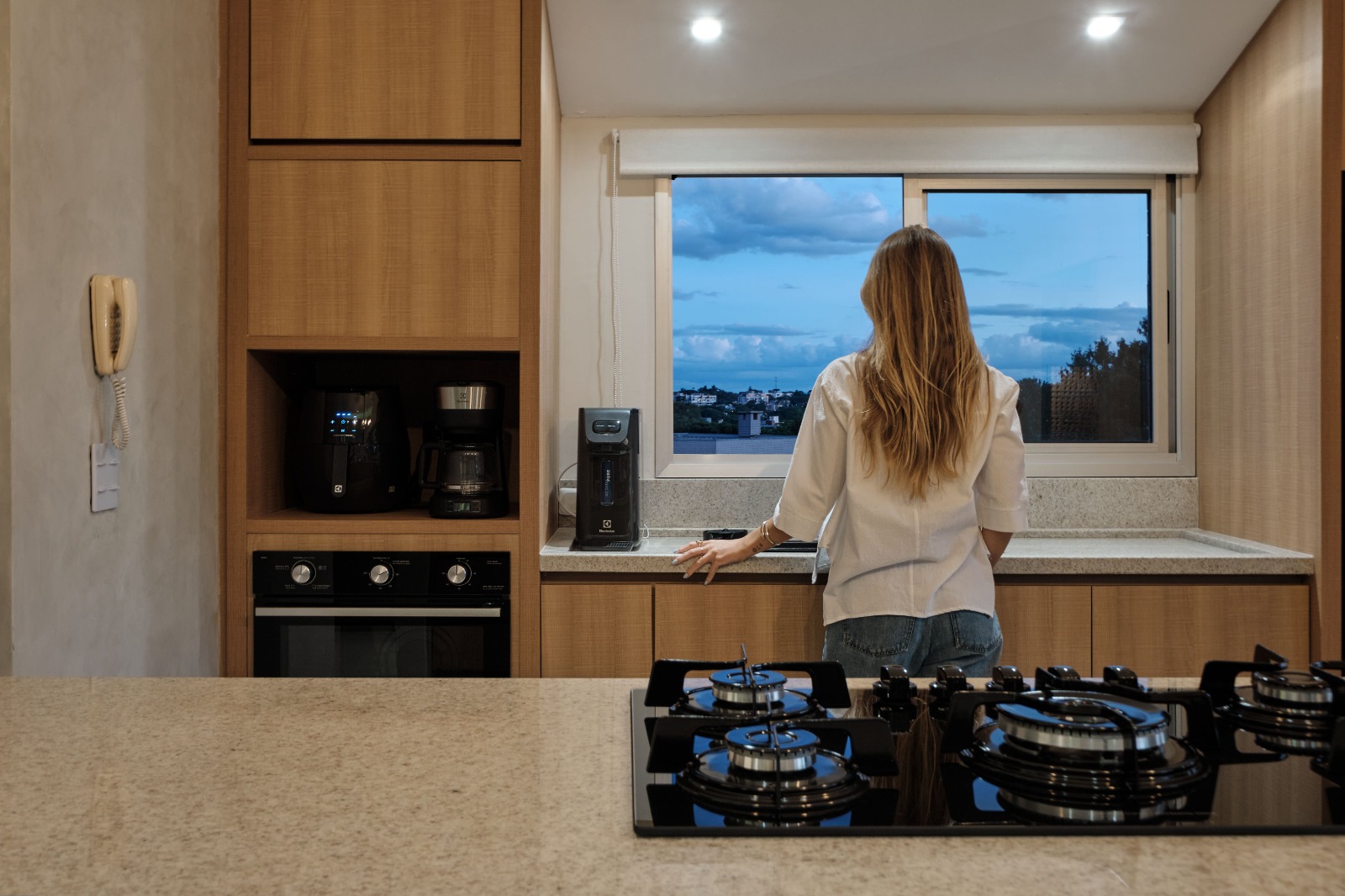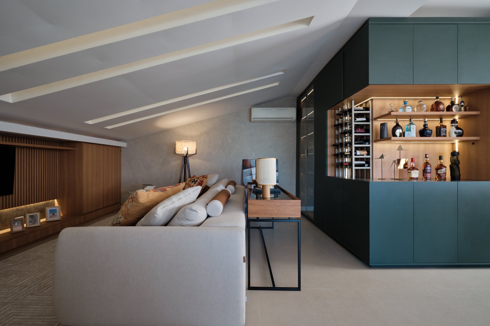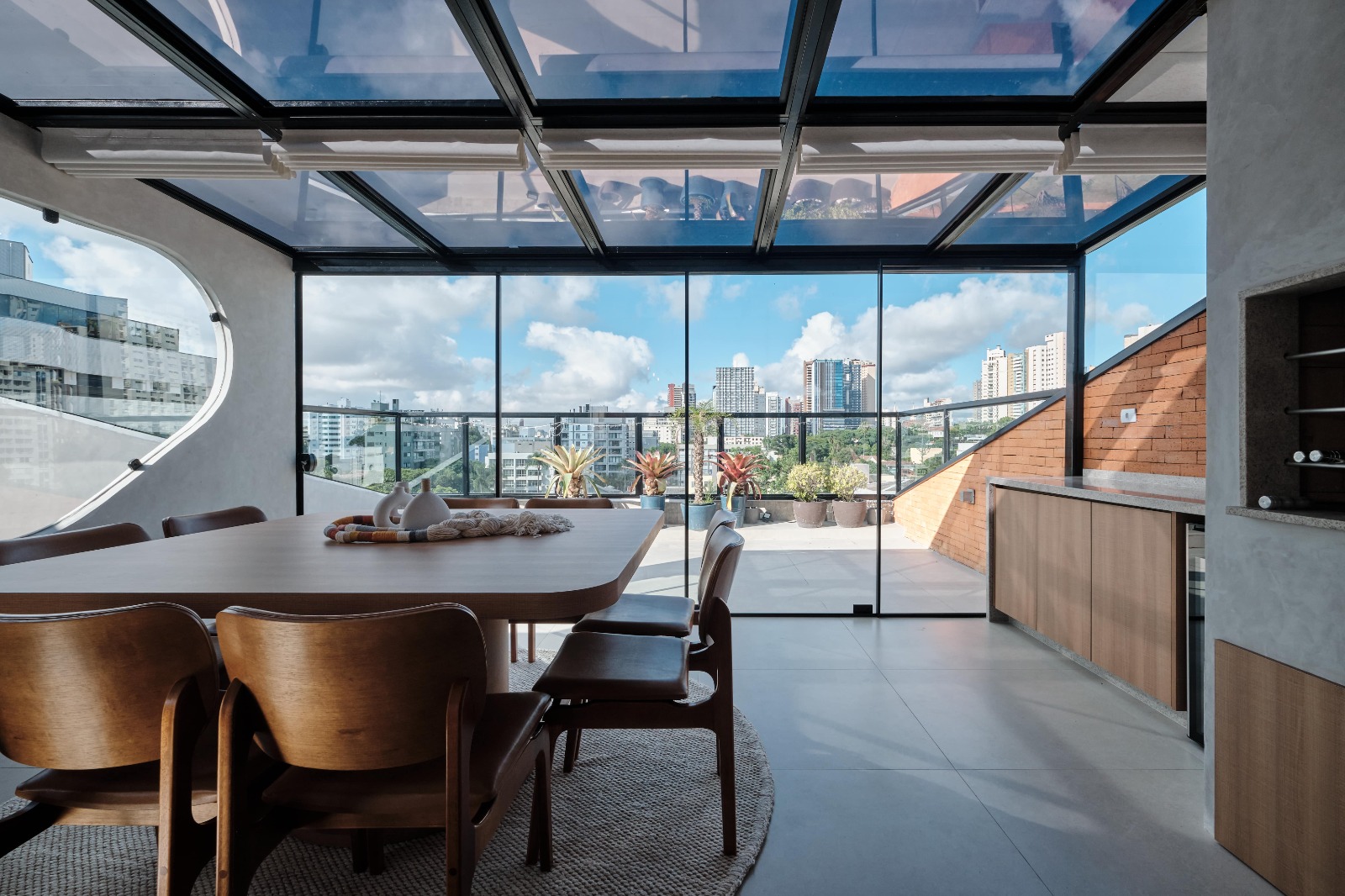 Um projeto inspirado na vontade de viver e receber dos clientes e trazer momentos de alegria que ficarão na memória. Unimos cores e texturas claras e divertidas, unidas à vista privilegiada que a cobertura tem.